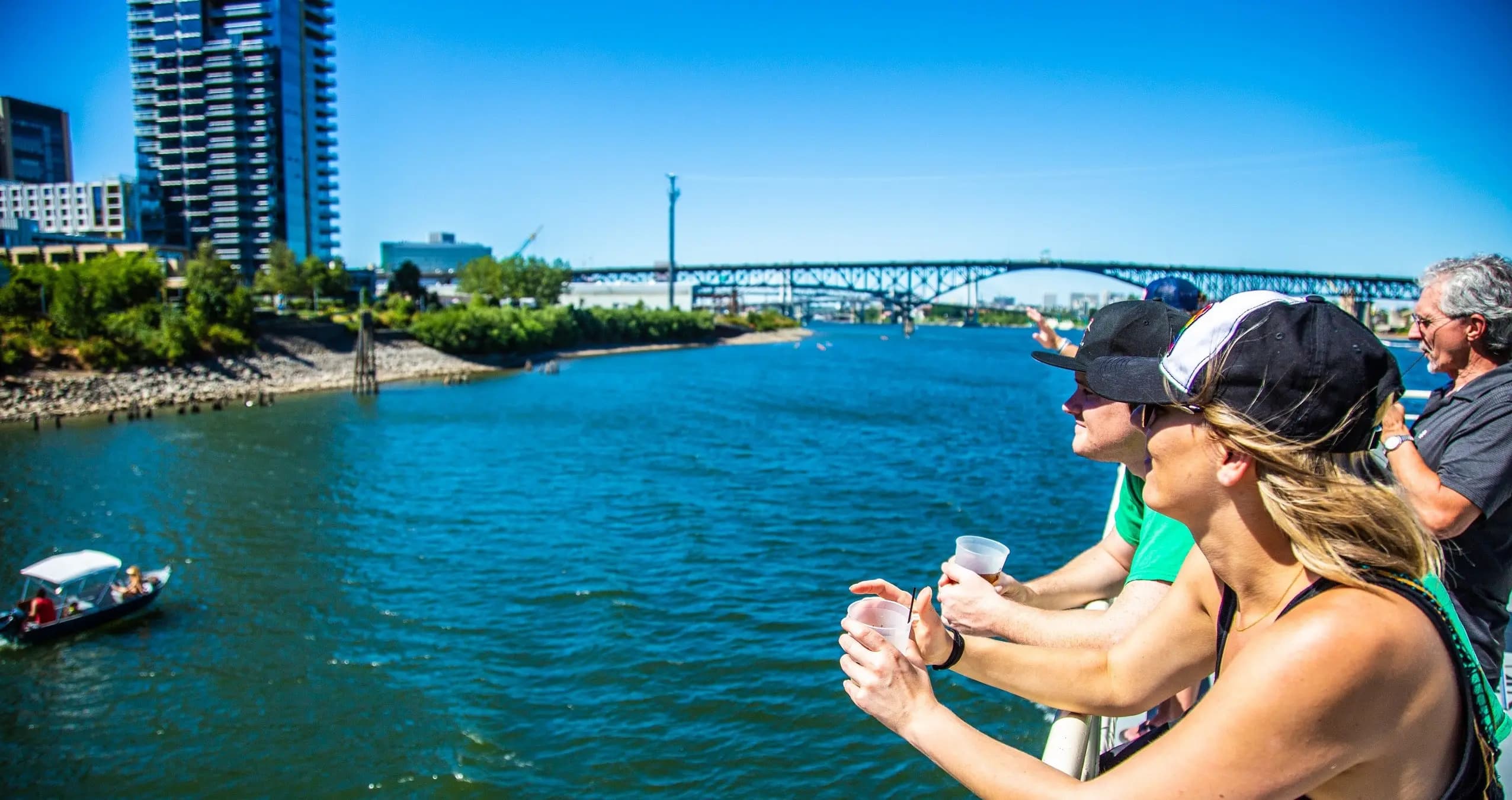 Live narration of Portland landmarks, bridges, floating homes, bald eagle habitats, and upscale residences