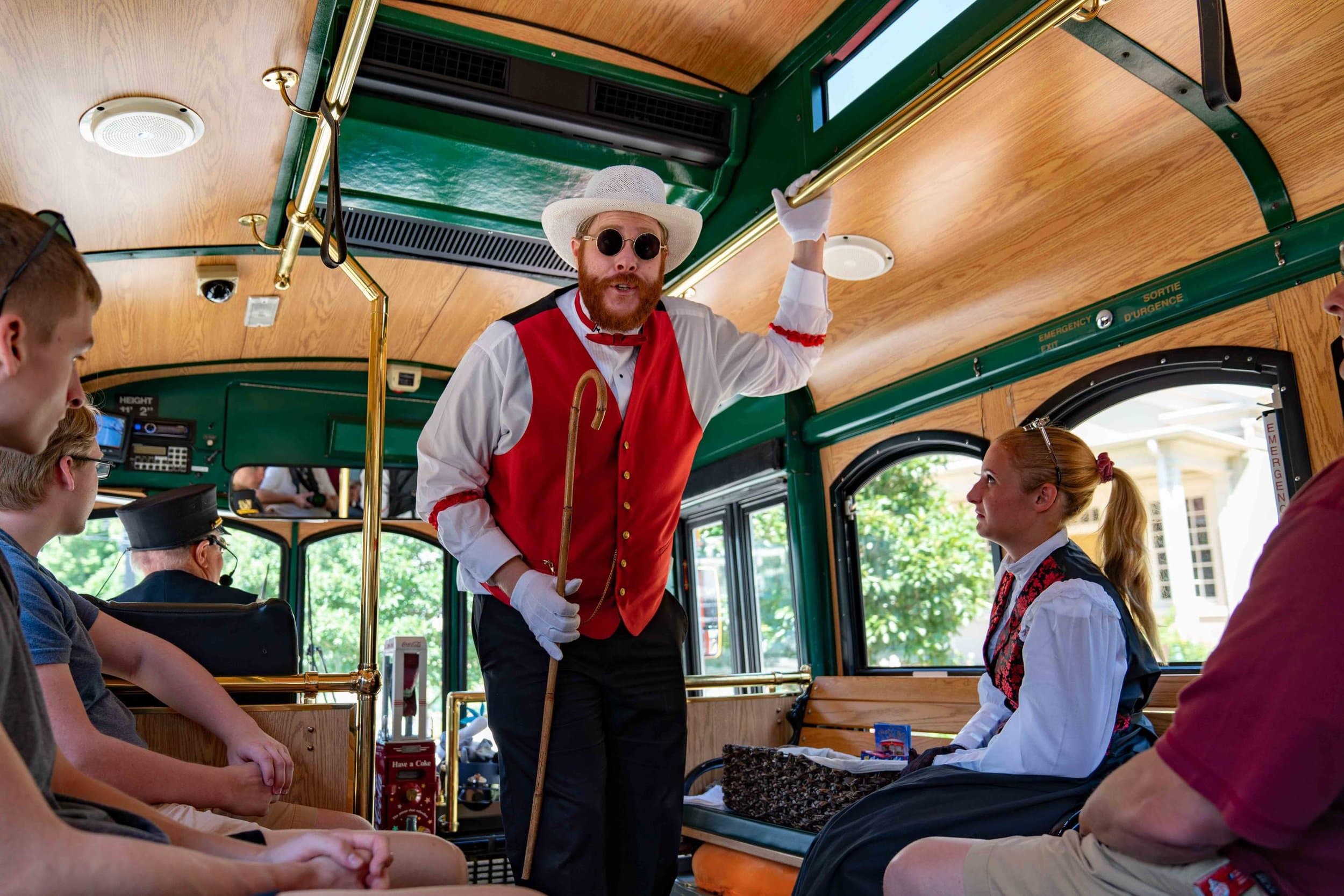A vintage trolley ride around downtown with actors in period costumes, music, and engaging storytelling—a sightseeing show on wheels.