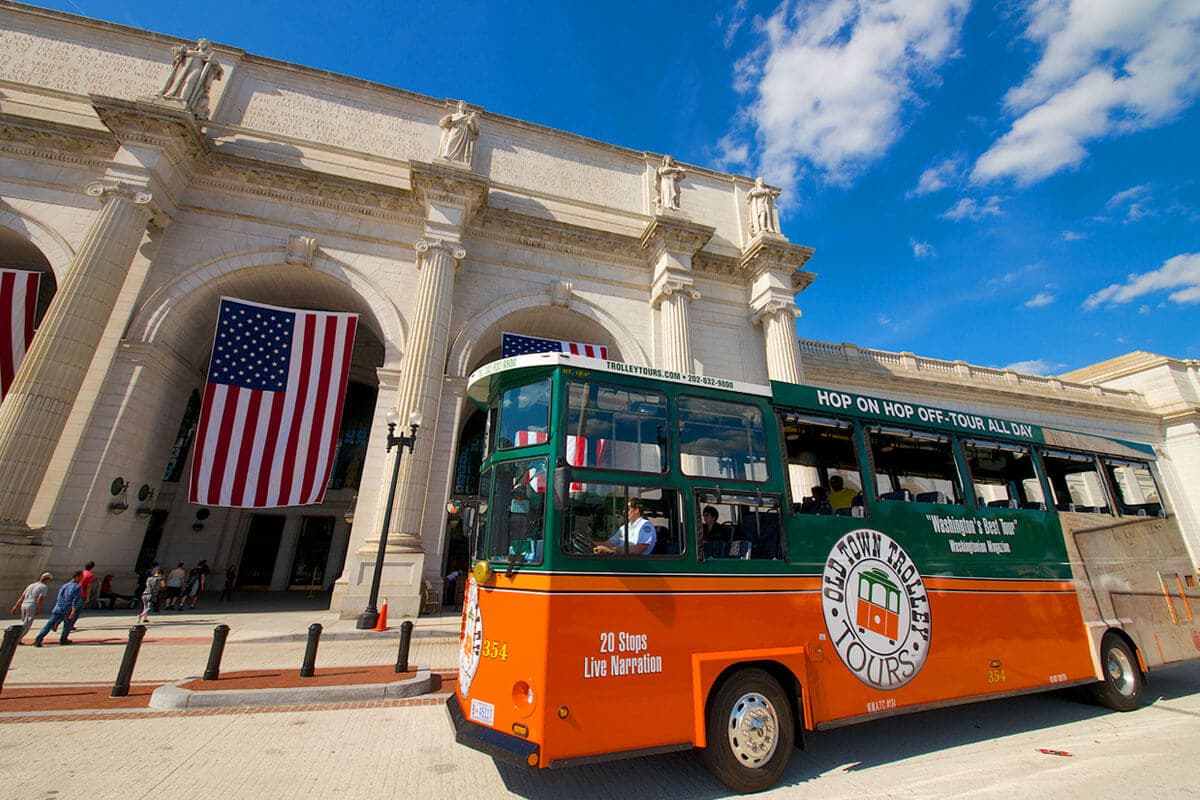 A hop-on/hop-off trolley tour of Washington DC, covering 15 stops across the city.